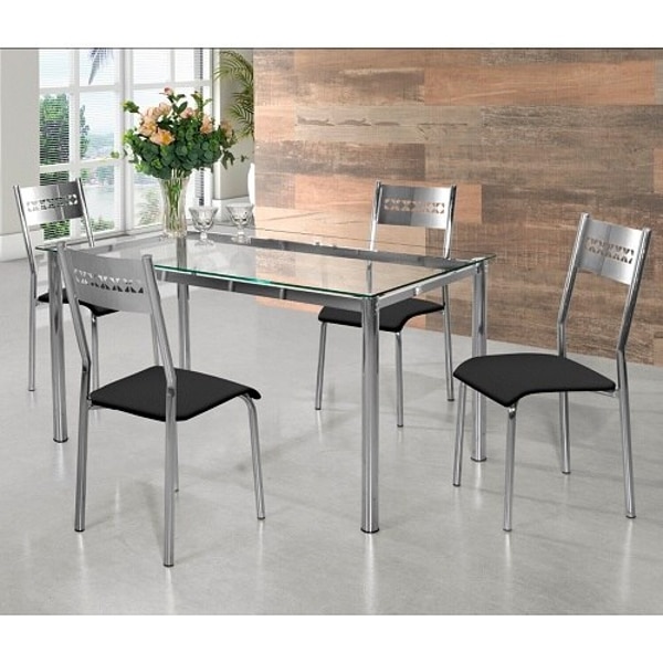 Conjunto Mesa Redonda De Vidro E 4 Cadeiras Lisboa Kappesberg Preto