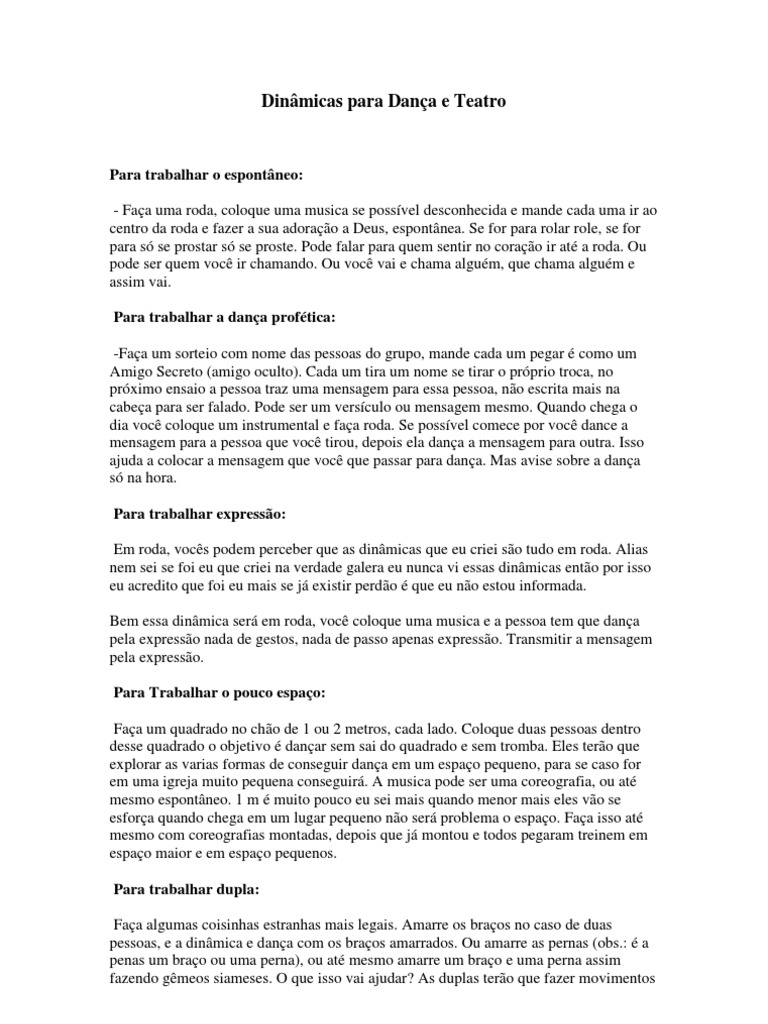 Dinâmicas Para Dança E Teatro Danças Lazer